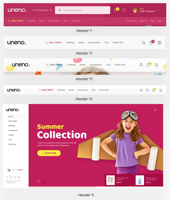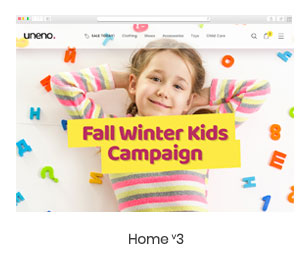 Kids love colors and toys. If you are looking to take your/your client’s kids clothing or toys business online, it is important that the website you build reflects what kids love. We’ve built this theme to help you do just that. Our Kids Clothing and Toys Store theme, Uneno, is a very colorful theme with clean layout and kids friendly fonts. It sets a joyful mood for your website encouraging visitors to your website to feel at home.